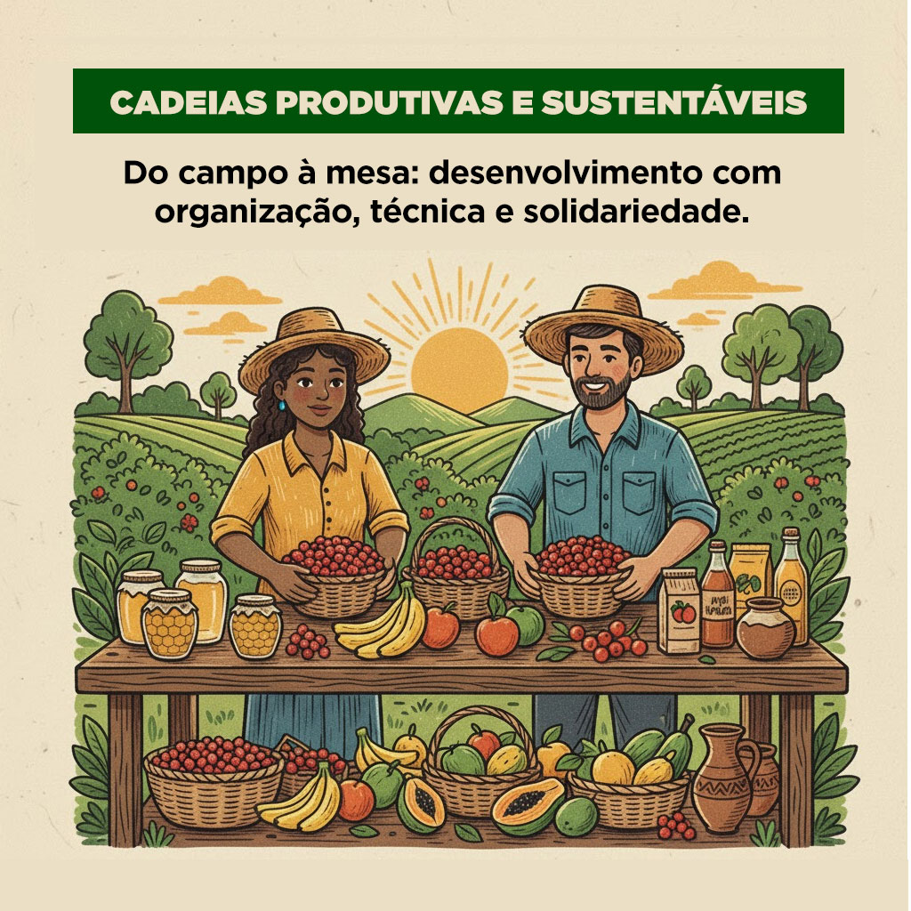 As cadeias produtivas sustentáveis são o alicerce de uma nova economia no campo, uma economia baseada na cooperação, na autonomia e no respeito ao meio ambiente. Elas mostram que é possível produzir com qualidade, agregar valor aos produtos locais e, ao mesmo tempo, preservar os recursos naturais e fortalecer as comunidades rurais.