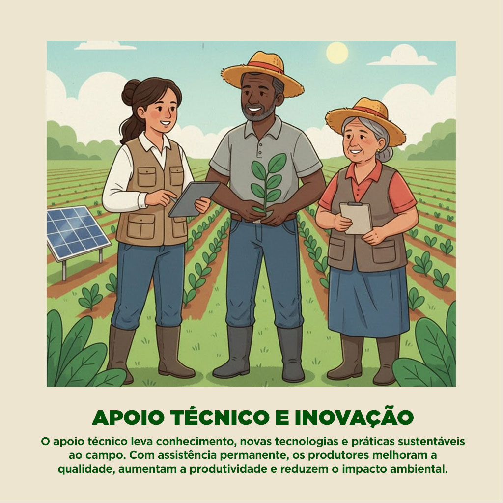 O apoio técnico permanente é outro pilar desse processo. Com orientação especializada, agricultores familiares aprimoram técnicas, adotam sistemas agroecológicos, melhoram o beneficiamento dos produtos e agregam valor às suas marcas locais. Isso aumenta a competitividade e fortalece o protagonismo das comunidades, que deixam de ser vistas apenas como produtoras e passam a ser reconhecidas como empreendedoras solidárias.