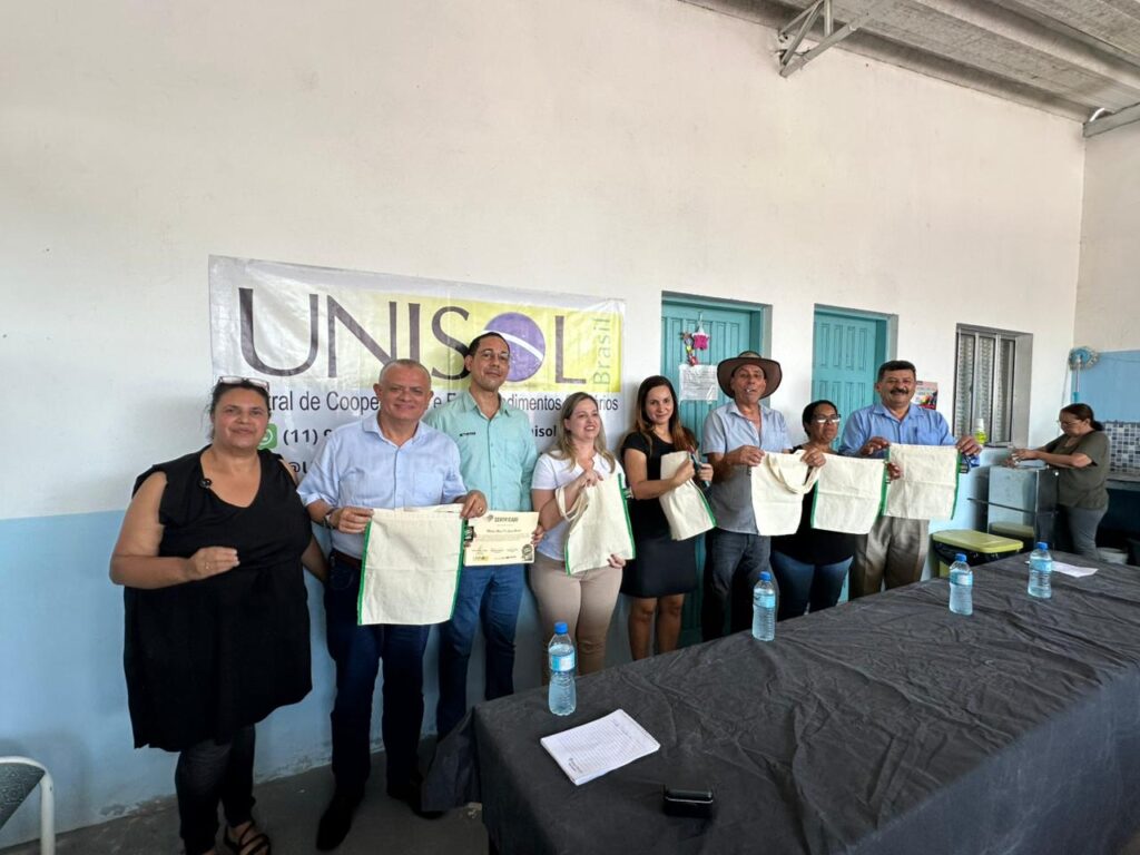 Para simbolizar o resultado prático da aprendizagem, foram entregues aos participantes da mesa de representantes, ecobags produzidas ao longo das oficinas, representando o trabalho desenvolvido em sala, a criatividade das formandas e o potencial produtivo que pode ser ampliado por meio de políticas continuadas de economia solidária.