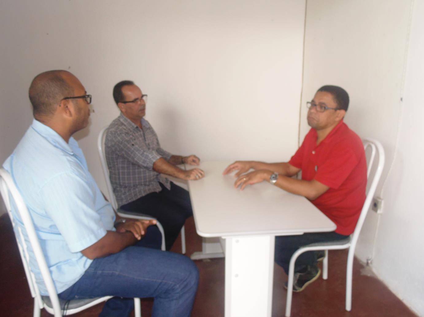 O pesquisador (de camisa listrada ao fundo) conversando com envolvidos da Economia Solidária sobre a pesquisa com a Coocai