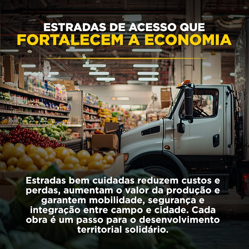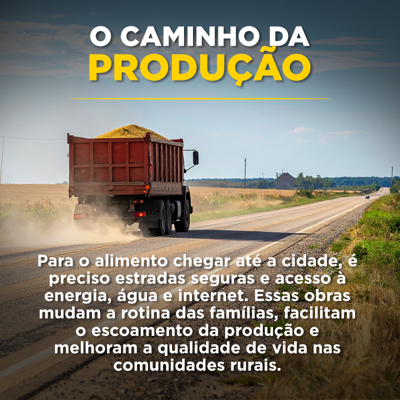 Com estradas seguras, a produção chega aos mercados locais e regionais. Com energia e internet, o campo se conecta ao conhecimento, à tecnologia e às oportunidades. Com água, garante-se a produção, a saúde e a dignidade das famílias.