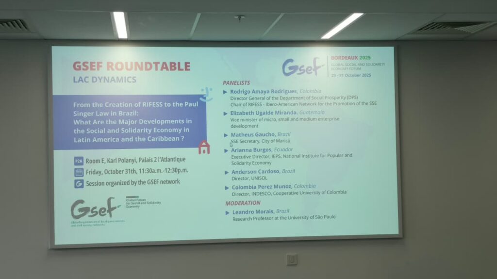 A UNISOL Brasil marcou presença no Fórum Global da Economia Social e Solidária (GSEF 2025), realizado entre 29 e 31 de outubro, em Bordeaux, na França. O evento reuniu representantes de cerca de 100 países para debater estratégias e experiências que mostram que é possível construir um modelo de desenvolvimento baseado na cooperação, democracia econômica, sustentabilidade e justiça social.