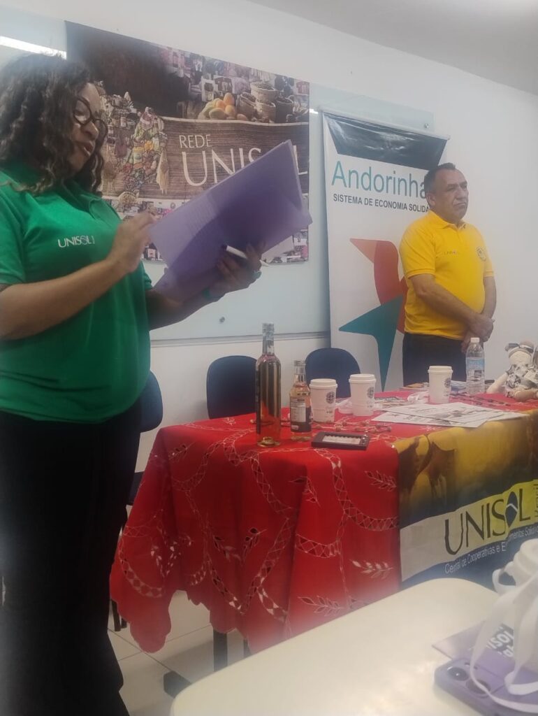Durante a atividade, foram destacadas também as pautas que têm orientado a atuação da UNISOL Brasil em 2025, entre elas a defesa da transição justa diante das mudanças climáticas. Ao responder perguntas do público, a direção da entidade reforçou o conteúdo do seminário realizado em julho deste ano, produzido em parceria com a Unicopas, e relembrou a Carta-Manifesto pela Transição Justa, reafirmando o compromisso dos empreendimentos solidários com o futuro do planeta.